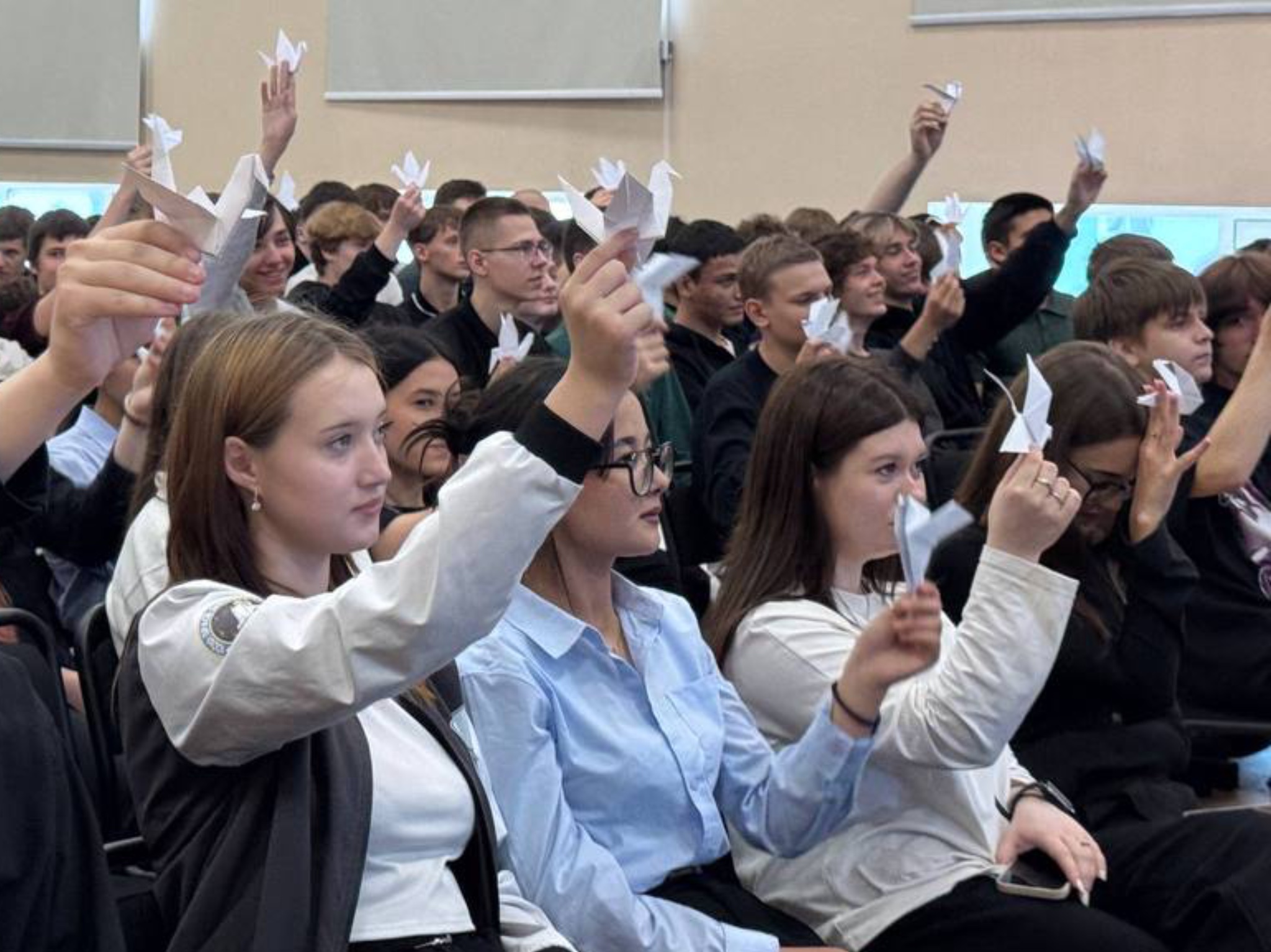 В завершение мероприятия студенты и правоохранители подняли над головами бумажных голубей в память о жертвах терактов.