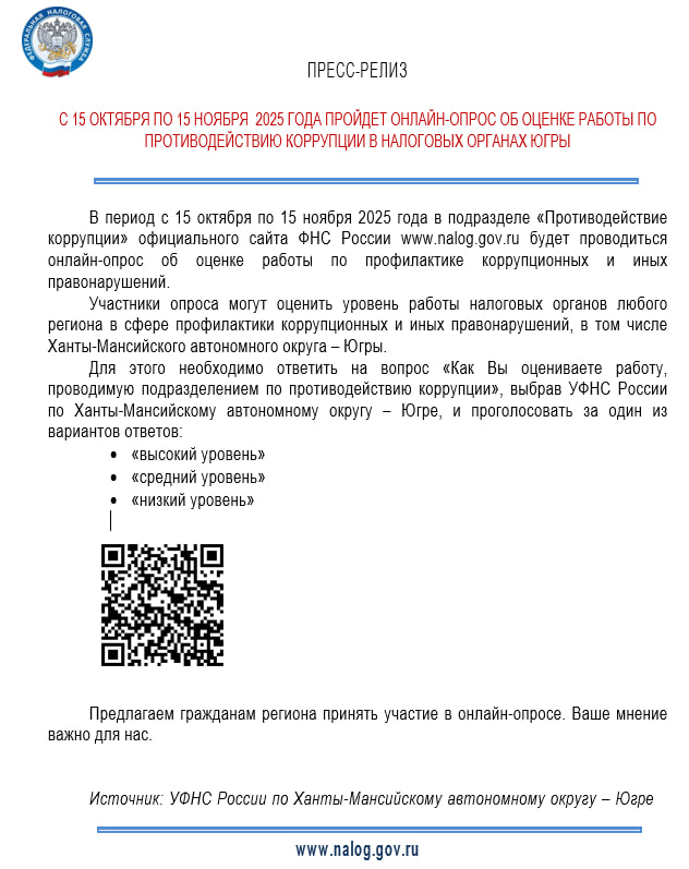Для участия в онлайн-опросе необходимо пройти по ссылке https://opros.myopenugra.ru/opros/10/interview/new/ и ответить на предложенные вопросы.